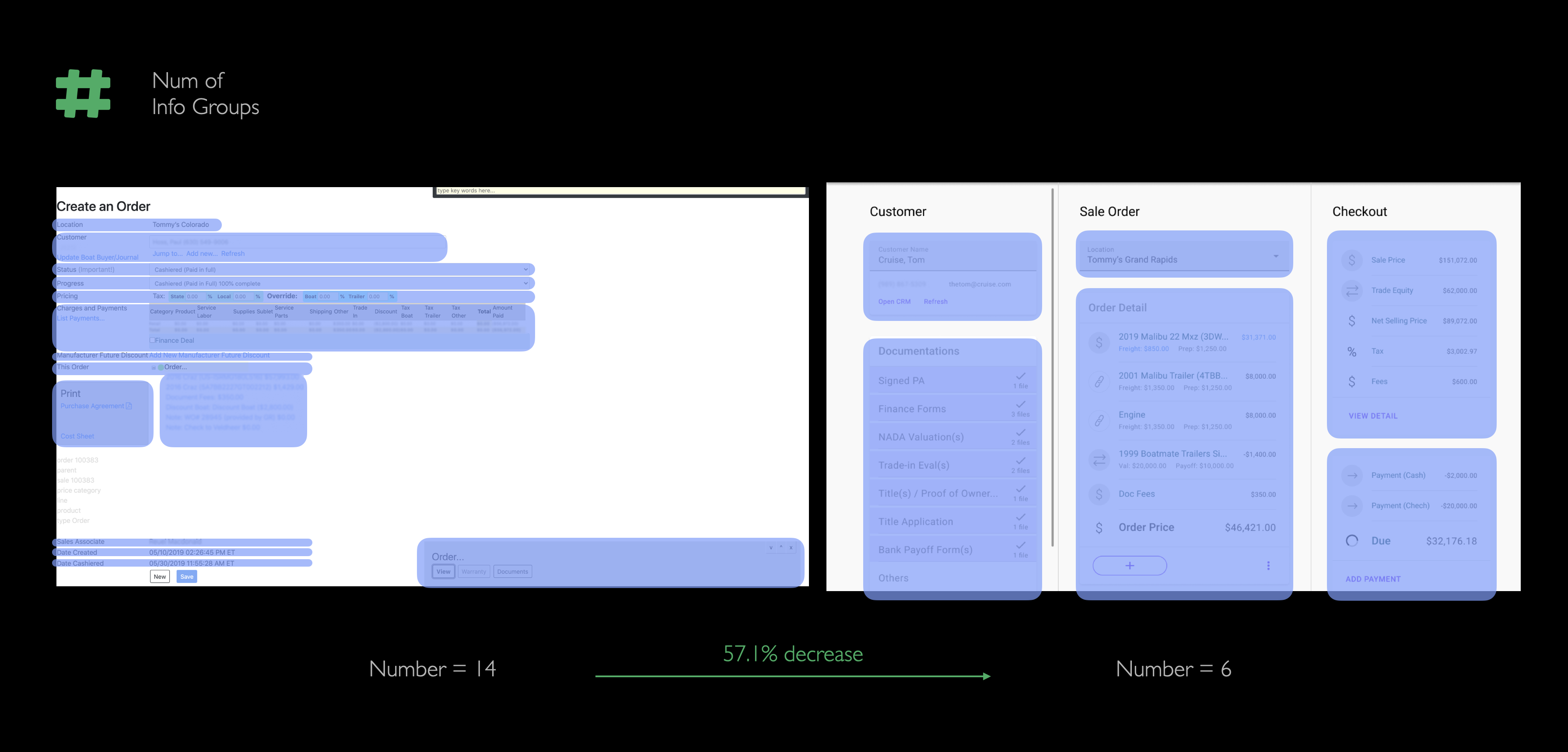 “How might we make it clear that the trailer and engine are associated with the boat?” This was a feedback gathered from the salespeople, who wanted to easily read the boat-parts associations in order to make quick decisions when negotiating with customers face-to-face.