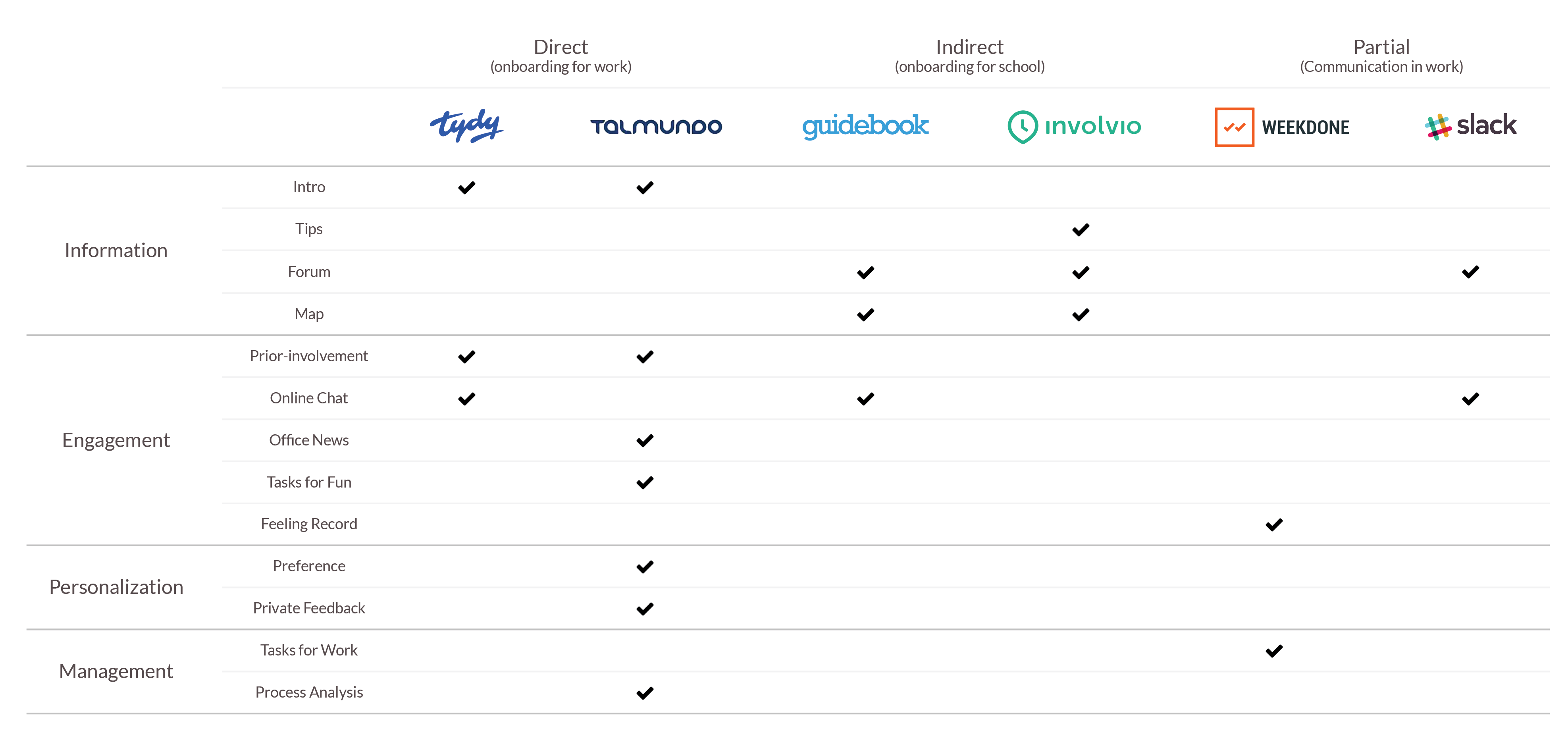Only one tool named Talmundo focus on more personal level and provides dynamic ways to engage with the new community.