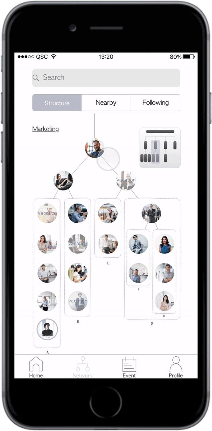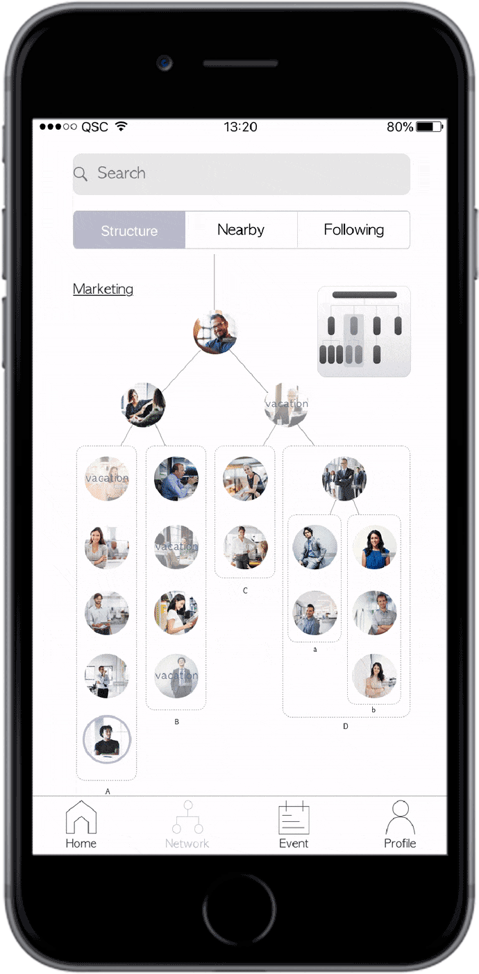 Network ---- Display the organizational structure in a dynamic way, where new employees can easily know other colleagues.